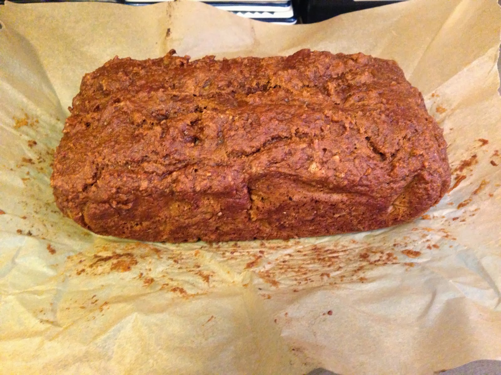 Pre heat oven to 350. Mix all the dry ingredients except the walnuts in one bowl set aside. Mix all the wet ingredients in a separate bowl the combined the wet to the dry. Now this is a very dense thick dough that means you did it right. Lastly fold in the chopped walnuts, pour into your parchment paper lined loaf pan and bake for 45 min. Pull out and test the loaf run a butter knife down through the center if it comes out clean its done. If you need to bake longer then go in 5 min increments so that way you don't over bake. Let cool in pan for 15 min then pull out of the pan but leave in the parchment paper till you are ready to cut. Now I hear that this bread freezes well but I have never had any last long enough to freeze.